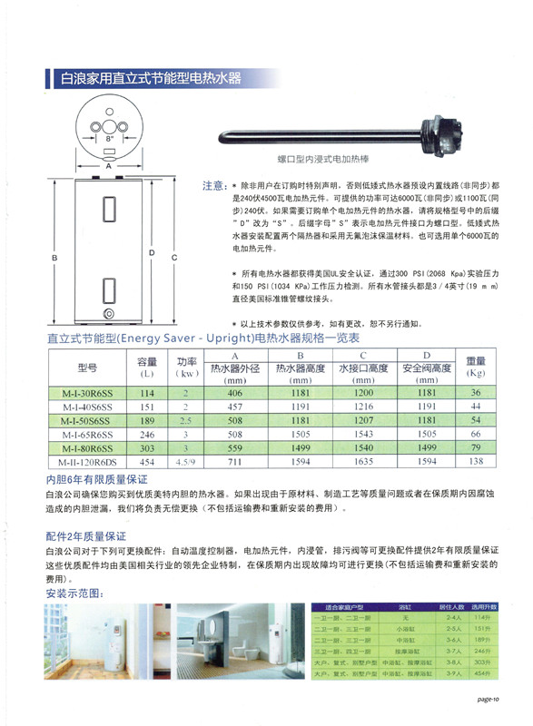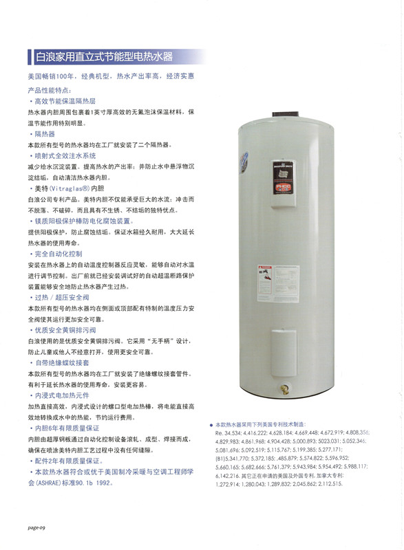 白浪家用直立式节能型电热水器